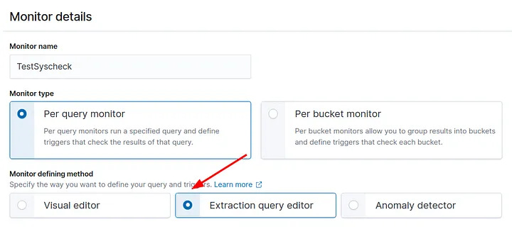 The monitor must be configured using Extraction query editor. Then add & test the query: